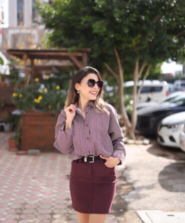 Kemerli Bordo Etek